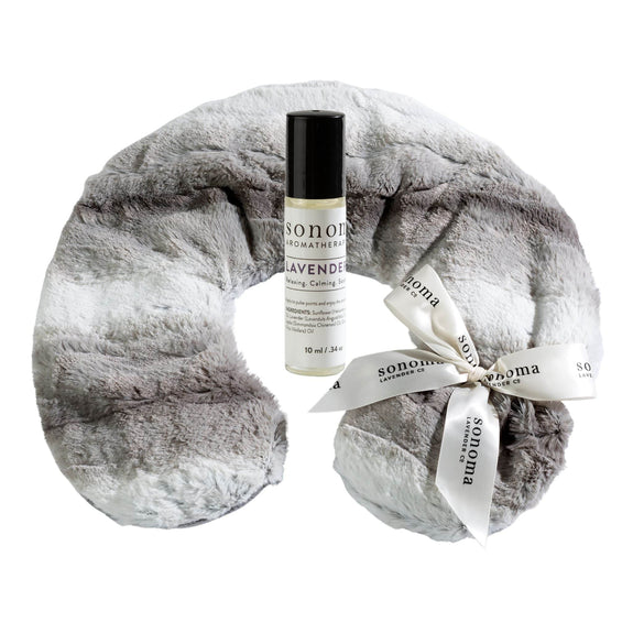 A true value. Receive a free Lavender Rollerball with the purchase of a beautiful soft Platinum Angora Neck Pillow. Boost the effectiveness of study sessions with our Soothing Study Kit, featuring our Lavender Neck Pillow with a Lavender Essential Oil Rollerball. Together they will provide soothing relaxation, reduced anxiety, and improved focus. The soothing scent of lavender is known for its relaxation qualities with the deep moist warmth of the neck pillow will relieve muscle tension. Wonderful for students of all ages.